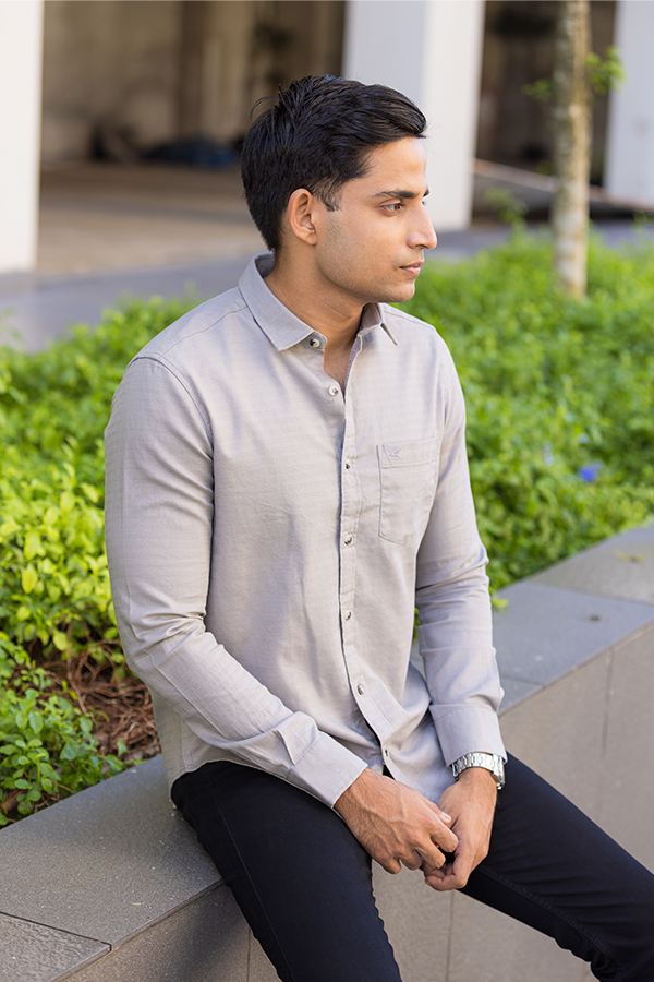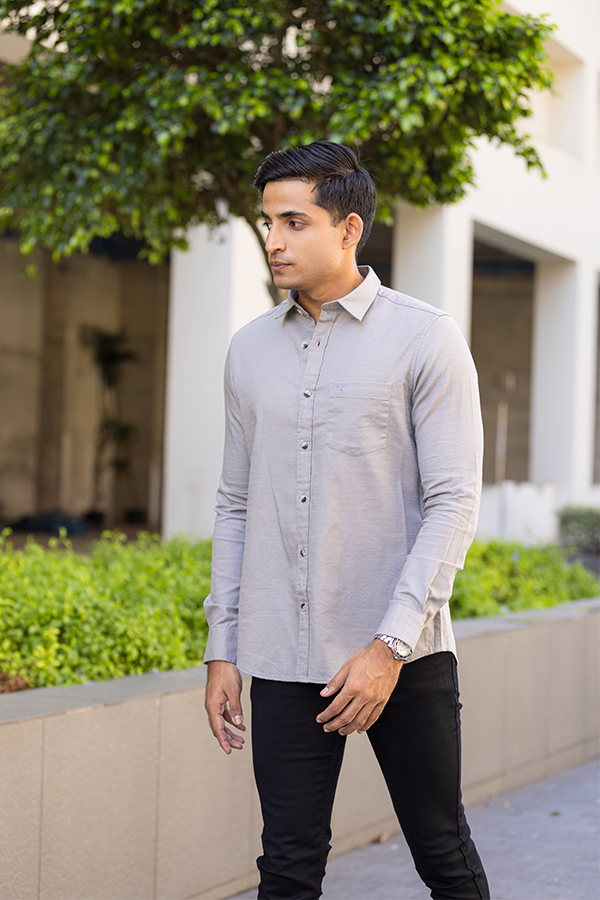 This solid grey shirt, made from 100% cotton, offers a slim fit with full sleeves and a mid-cutaway collar, making it a versatile and stylish choice for semi-casual occasions.