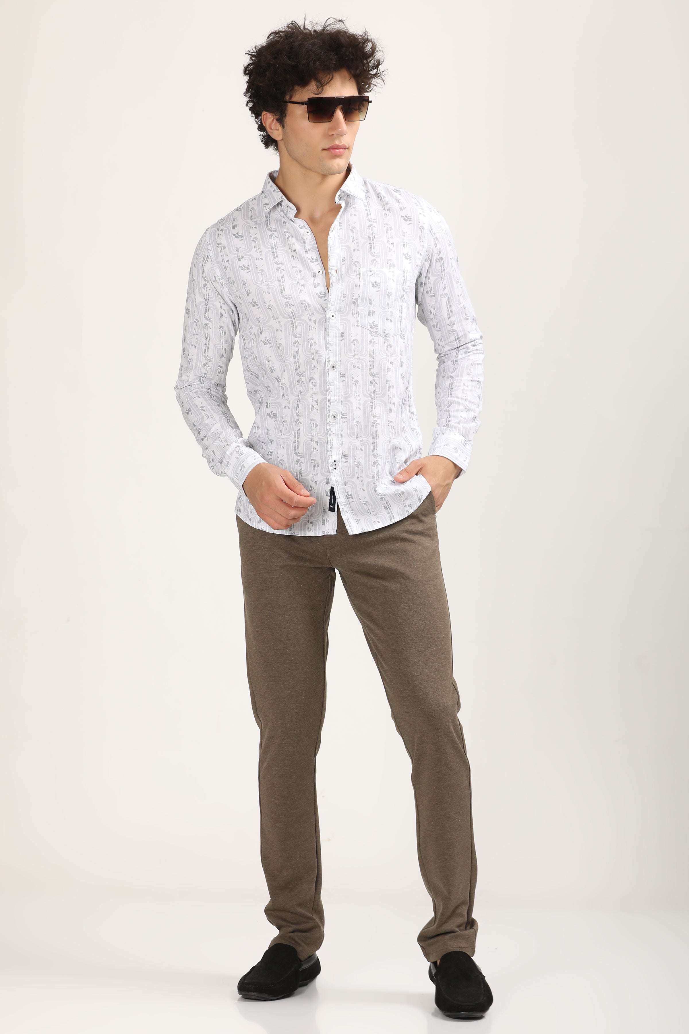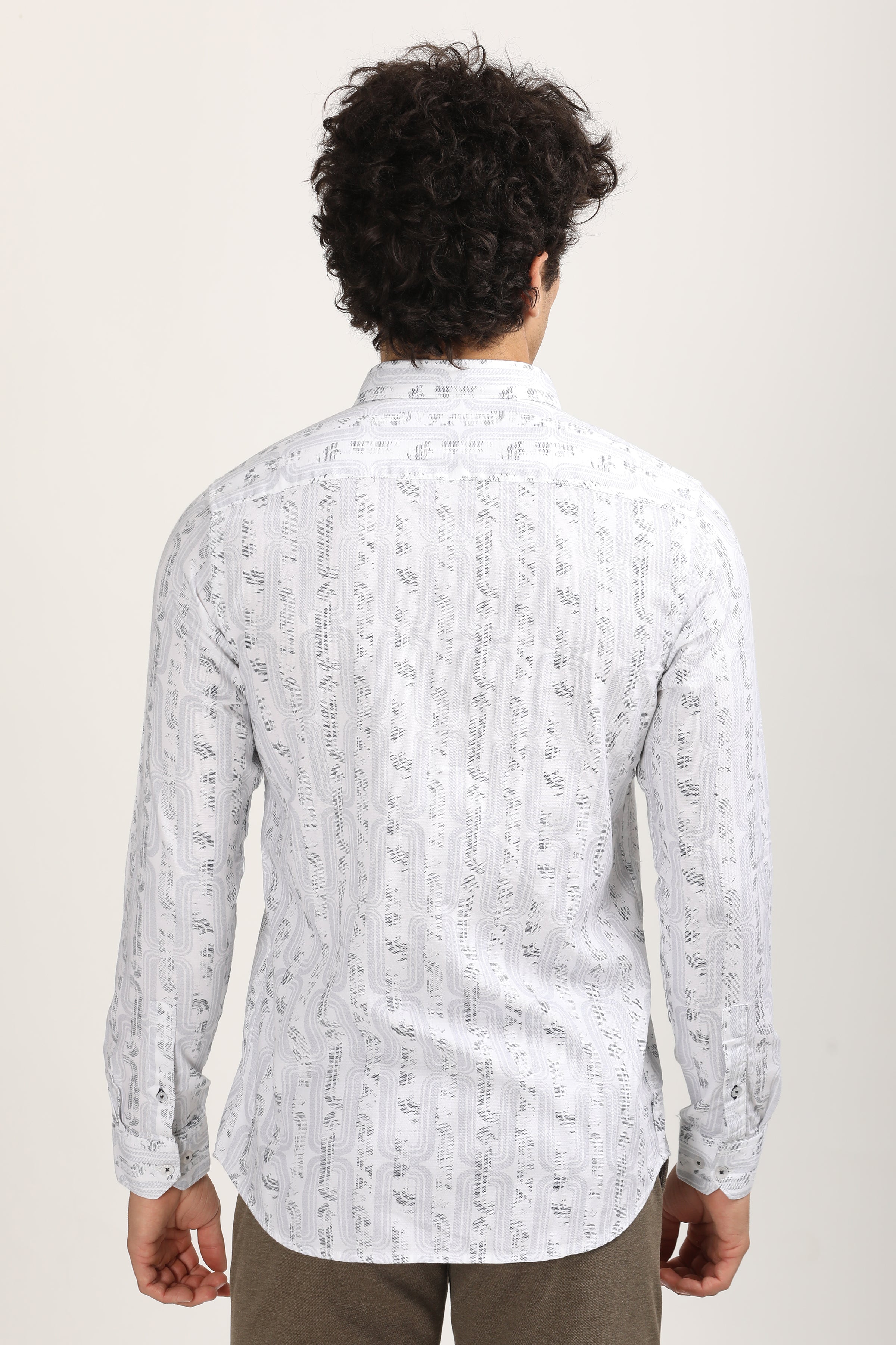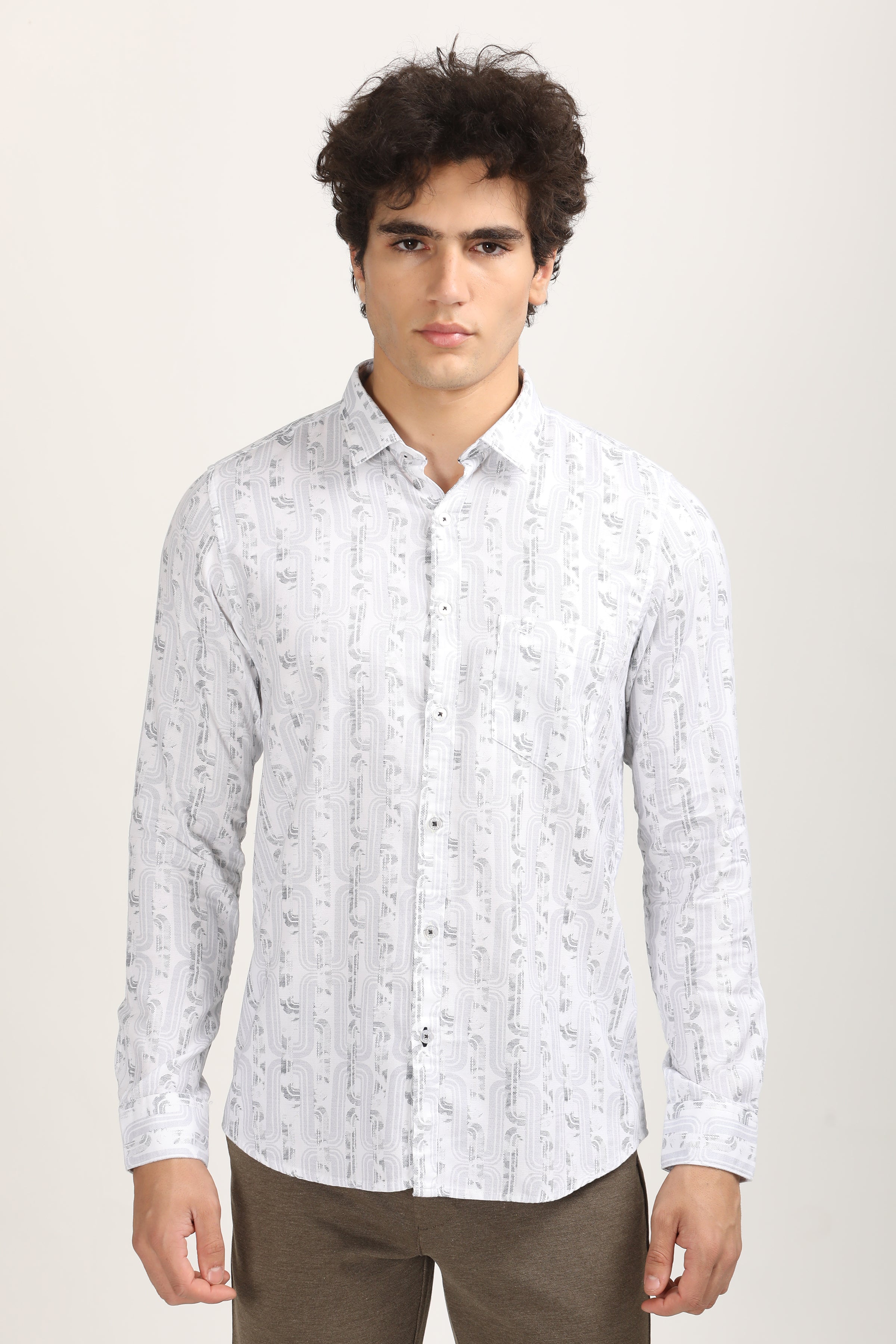 Elevate your wardrobe with this stylish textured printed shirt, perfect for any occasion. Crafted from premium-quality fabric, it features a unique all-over print that adds a touch of sophistication and personality to your outfit. The shirt is designed with a Slim fit, a classic collar, and buttoned cuffs, ensuring a sharp and comfortable look.