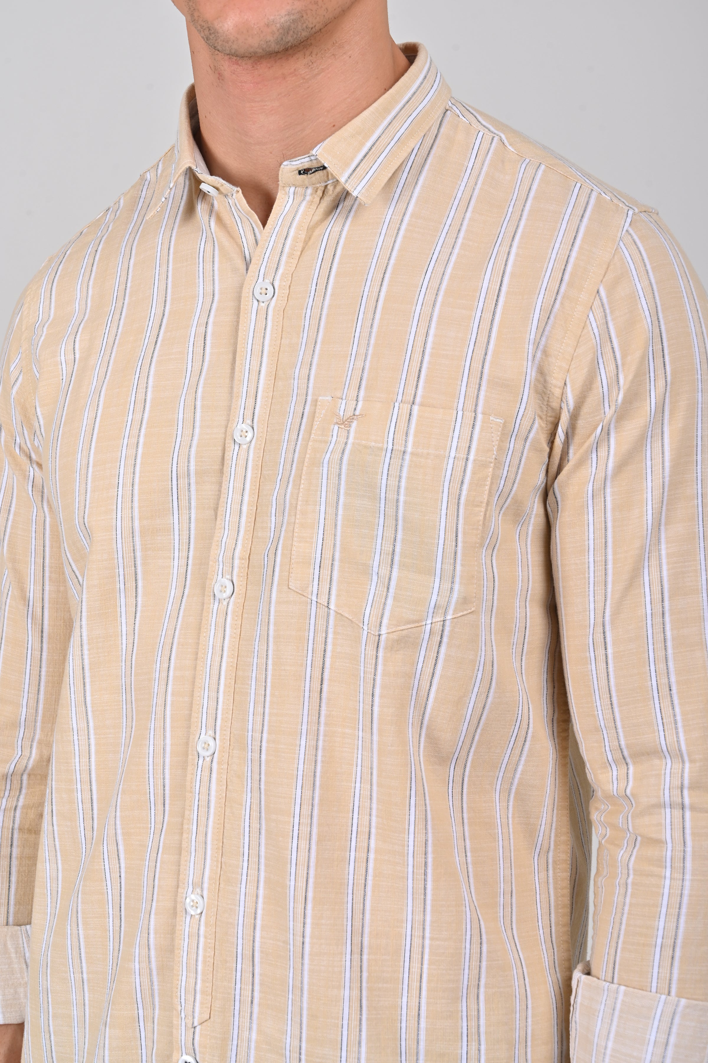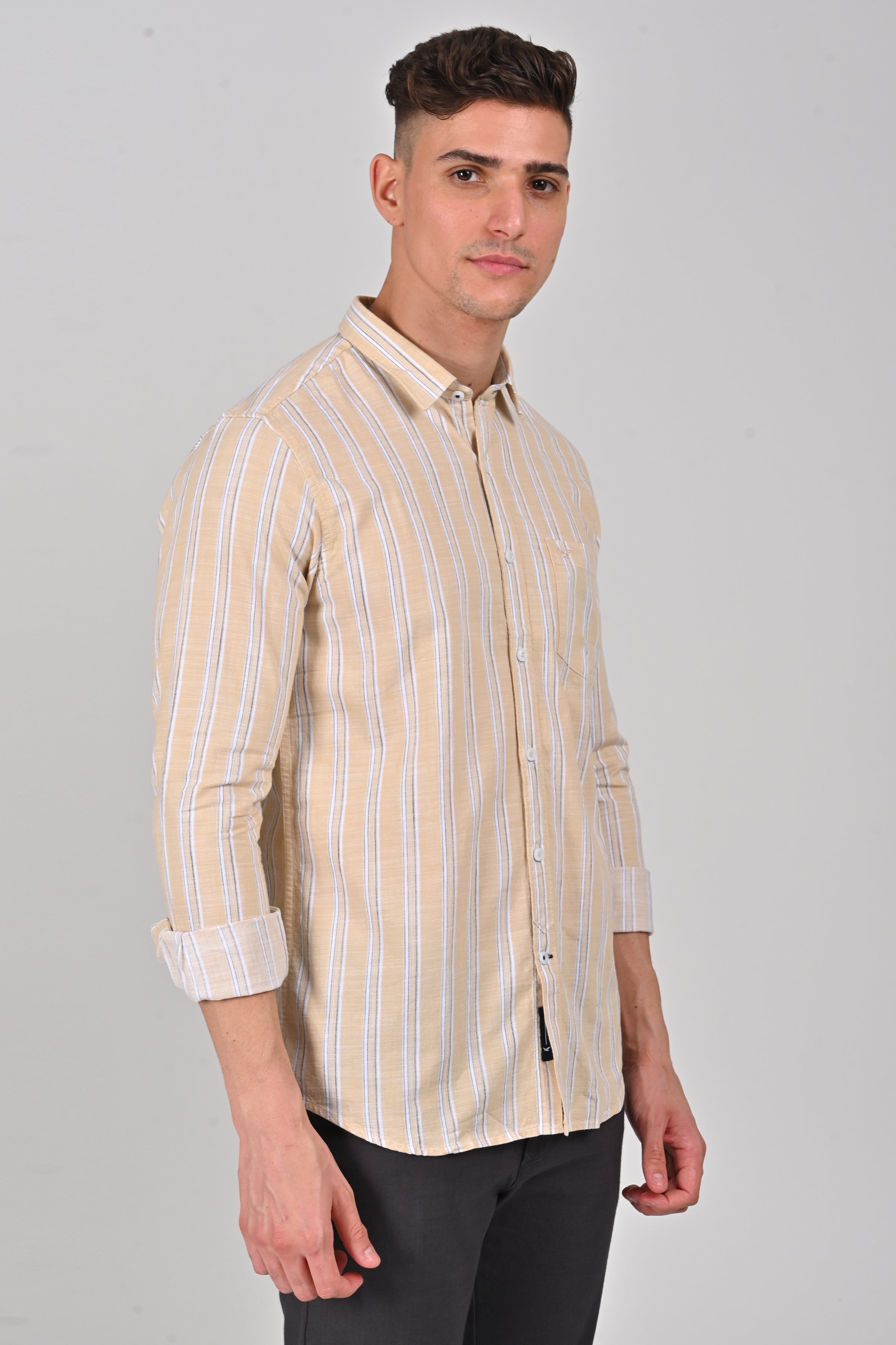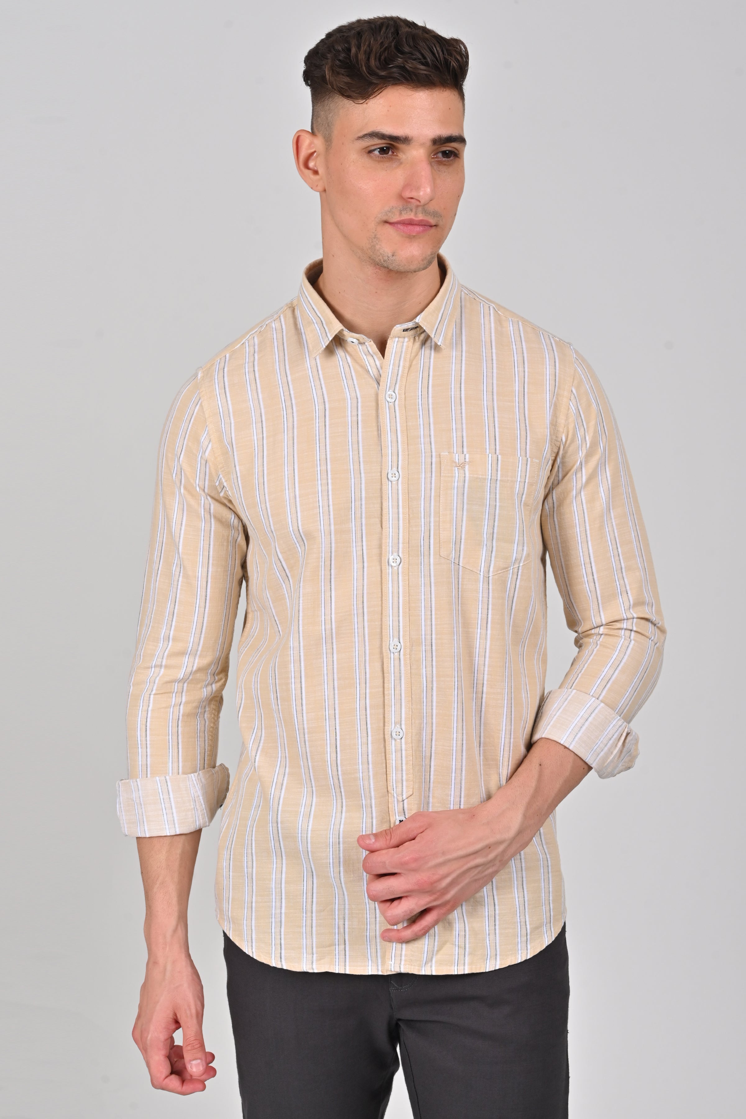 Stand out from the crowd with our unique stripe pattern, contemporary colors meticulously crafted details, and roll up sleeves add a touch of sophistication and individuality to any outfit. Embrace your distinctive style and celebrate the freedom of self expression.