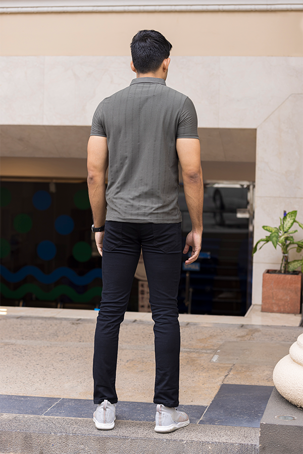This slim-fit T-shirt, crafted from a comfortable cotton-lycra blend, features a sleek mandarin collar, offering a modern and stylish look for casual occasions.